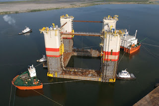 Cele 5 nave pe care le vedeti in aceste fotografii, MV Mighty Servant 2, Mighty Servant 3, MV Blue Marlin, Dockwise Black Marlin, Dockwise Tern sunt mega-cargouri de transport, folosite pentru ”gabarit depasit” in transporturile maritime! Rolul acestor mega-cargouri este unul destul de riscant si periculos, pentru ca de fiecare data incarcatura lor este una, in primul rand foarte scumpa, in al doilea rand foarte masiva, greu si dificil de manevrat! Cateva din ”obiectele” transportate de aceste mega-cargouri sunt de obicei platforme maritime de foraj petrolier si nave ce au suferit defectiuni foarte mari, de obicei nave militare! Un astfel de mega-cargou cantareste in jur de 30000 de tone deadweight si poate cara de doua ori mai mult!