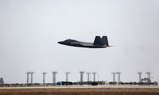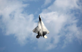 F 22 Raptor este un avion multirol, dar cu preponderenta de vanatoare, cu un singur loc, echipat cu tehnologie ce-i permite o manevabilitate foarte usoara, inclusiv decolari si aterizari pe vertical, posibilitatea de a sta nemiscat in aer, la panda, exact ca o pasare de prada, una invizibila de altfel, caci avionul dispune si de tehnologia stealth ce.l face indetectabil aparatelor radar de la sol! F 22 Raptor a avut zborul inaugural in 1990 iar pana in prezent au fost fabricate 168 de aeronave, toate apartinand flotei aeriene americane! Costul acestei armate aeriene este unul colosal, 65 de miliarde de dolari, pretul unui astfel de avion fiind de 150 milioane de dolari! In prezent se mai afla in productie alte 187 de avioane, toate pentru armata americana! Lasand datele tehnice deoparte, pe care le puteti gasi aici, va propun o serie de imagini cu F 22 Raptor in plina actiune! Avionul a fost si in distributia/actiunea filmului Die Hard 4 precum si The Avengers!